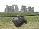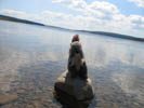 Veverka uprostřed kruhu kamenů u jezera Llyn Brenig