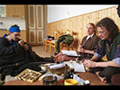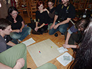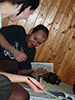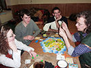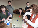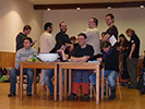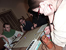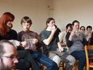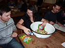 Někteří Lovci se rozhodli probdít celou noc. Když je nakonec hlad hlad dohnal o půl sedmé do kuchyně, zjistili, že kuchař je venku za zamčenými dveřmi, od kterých nikdo nemá klíč. Pustili ho oknem a pomohli mu snídani připravit, o čemž nakonec skoro nikdo neví. Kvalita fotky odpovídá tomu, jak jsme se cítili:)