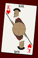 Dřevorubec a truhlář Harun našel malého Solana jako nemluvně na cestě lesem při své obvyklé cestě do lesa. Nikde neviděl stopy po jeho rodičích, tak dítě vzal domů. V žádné ze sousedních vesnic nikdo potomka nepostrádal, tak byl Harun nucen se jej ujmout. Vychoval jej jako vlastního a nikdy mu o jeho rodičích nic neřekl. Od jeho mládí bylo Harunovi jasné, že Solan není obyčejné dítě. Na svůj věk nezvykle silný. A také velice bojovný. V okolních vesnicích nebyl vrstevník, který by ho přepral. Dřevorubectví nebylo tak těžké, ale truhlářství už ano. Když se blížilo 16. jaro od doby, co byl Solan nalezen, Harun už takřka nebyl schopen opustit svoji postel. Nakázal Solanovi, aby si vzal všechny úspory a vyhledal jeho dávného kamaráda z dětství, který nyní žije v blízkém městě a vede šermířskou školu. Solan zůstal u svého adoptivního otce až do jeho posledního dechu. Po pohřbu neotálel a vydal se do města. Osud ale nechtěl, aby onu šermířskou školu našel. Stačila krátká chvíle ve městě a už si ho obrala parta lapků. Jeho štěstí byla jeho pozornost a tak si krádeže ihned všiml a s lapky vyvolal rvačku. I když byli v přesile, dokázal je porazit s pomocí své hole. Byl by to pro něj konec, tehdy v té ulici, protože se na místo seběhly posily lapků. V té chvíli se ale do situace vložil cizinec a všechny zahnal. Představil se mu jako mistr Tien Shin-Han, vedoucí Jeřábí školy šermu. Mistr Han v něm viděl potenciál a nabídl mu přijetí do prvního ročníku. A tak začalo tvrdých 6 let výcviku, turnajů a také učení (Hanova škola dbala na dobré vzdělání svých studentů). Když se naučil vše, co mohl, vyslal jej mistr Shin -Han do světa nabrat potřebné zkušenosti. A na rozloučenou mu Han dal nové jméno - Kar Pai-Hung, což v Hanově jazyce znamenalo "neklidná duše". Ještě nebyl připraven přijmout nové jméno a na Hanovu radu se vydal do největšího města v kraji získat zkušenosti v aréně. Již znalý města se vyhnul okradení, ale potíže si ho stejně našly v podobě rvačky šesti ranařů proti jednomu. Netrvalo to dlouho a všech šest bylo v bezvědomí. Cizinec se představil jako Čchien Fu-Tong. Hlava klanu Fu, z rodiny Tong. Rodina, s přísným kodexem cti. Ovládající již celé pobřeží a pomalu vytlačující ostatní zločinecké cechy a klany, při své expanzi do vnitrozemí. Čchien mu okamžitě navrhl pracovat pro klan Fu a pomoci mu vymýtit cech zlodějů a sadistické bratrstvo, vedoucí válku o nadvládu nad městem. Byla to nabídka, která se neodmítá. Čtyři roky plné bojů, vydírání, uplácení, vyjednávání a politiky a konkurence byla rozprášena. Město bylo v rukou rodiny Tong, která skoncovala se zločinem. A to byl čas posunout se dál. Čchien nechtěl přijít o svého skvělého muže a přítele, ale neměl na vybranou. Na doporučení se vydal do sousedního království, kde spřátelený klan rekrutoval zdatné bojovníky. Osud však zasáhl a poslal mu do cesty mnicha. Potkali se v lese několik mil před hranicemi. Mnich byl v zajetí banditů, kterým došla trpělivost. Nepočítali však s velice naštvaným šermířem. Když bylo po všem, mnich se představil jako Výkop Zákop. "A jak říkají tobě?" "Kar. Kar Pai-Hung." Cestovali spolu mnoho let, zažili mnoho dobrodružství, až jednoho dne v jedné hospodě je naverbovala velice nesourodá družina. Kar nemyslel, že s nimi zůstane moc dlouho, jeho neklidná povaha ho táhla pryč a málem odešel s Výkopem. To už ale bylo pozdě. V družině jej udržely city ke Kalevatar. Trvalo to dlouho, nikdy nic podobného nezažil. Cestu k sobě si však po mnoha dobrodružstvích našli. Jejich štěstí mělo krátkého trvání. Osud znovu zasáhl, tentokrát však tvrdě, když při souboji s drakem Kalevatar zaplatila cenu nejvyšší...